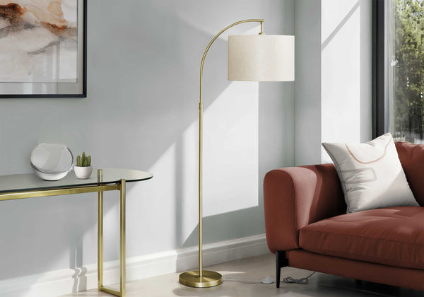 LIGHTING - 65"H ARC FLOOR LAMP BRASS METAL / IVORY