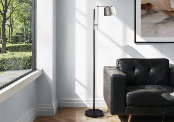 LIGHTING - 65"H FLOOR LAMP BLACK METAL / NICKEL SHADE