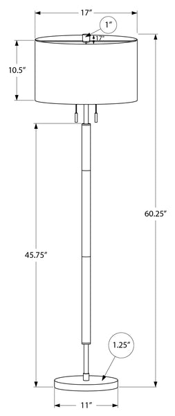 60 Inch Nickel Floor Lamp Enliven your space with this modern and sophisticated 60"h floor lamp in black and nickel metal with a chic grey fabric shade. Under the drum shade, this lamp has 2 light sockets that can house two 60W bulbs each (not...