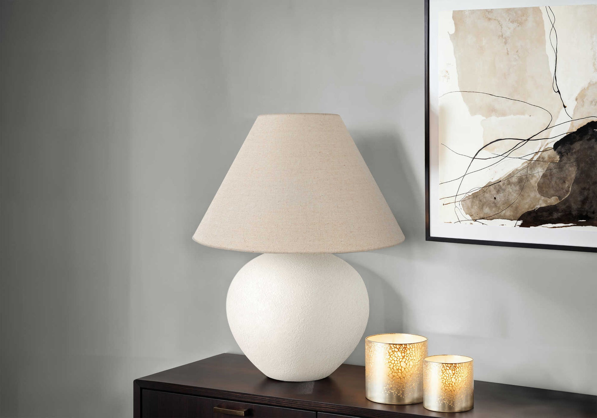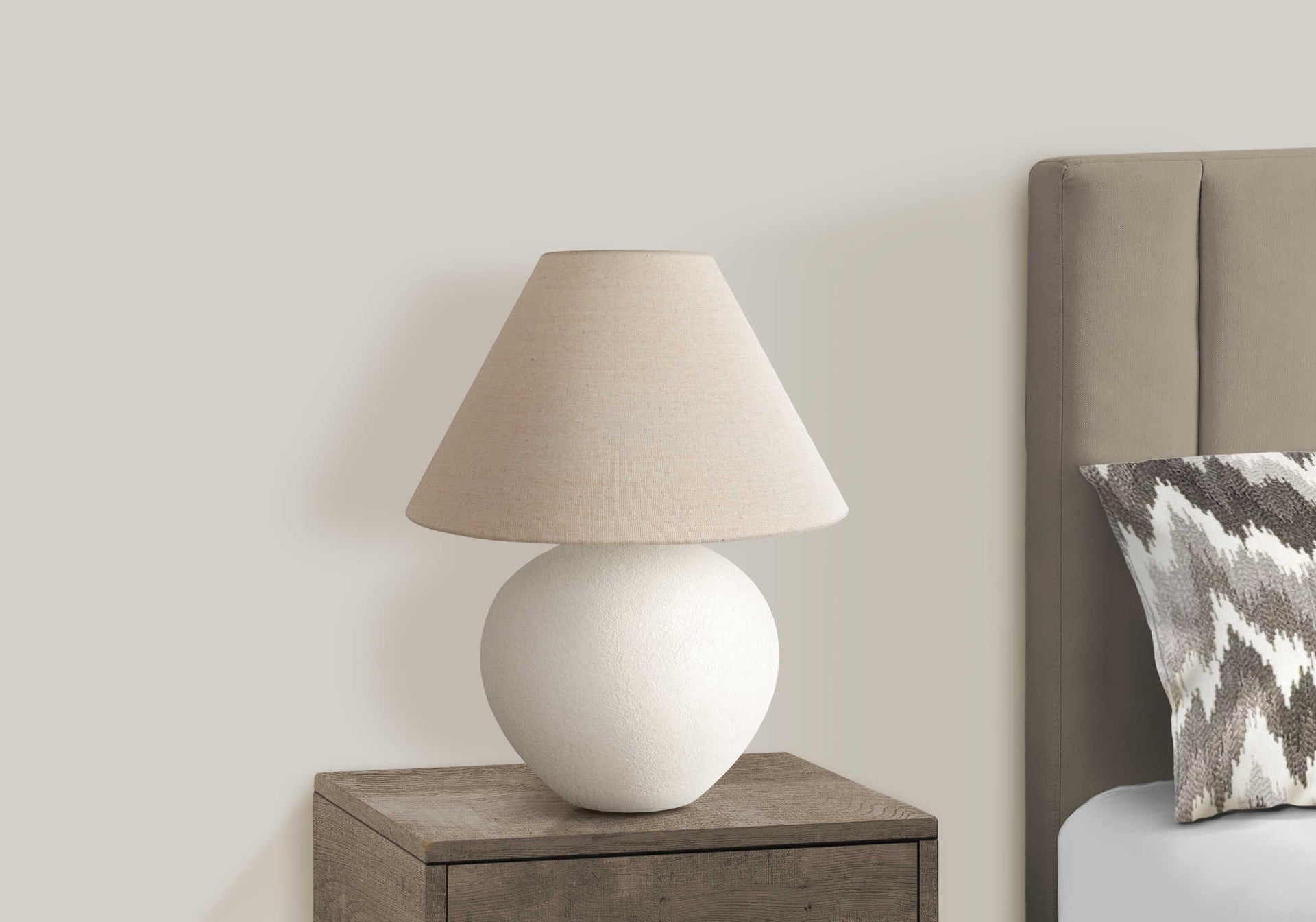 LIGHTING - 16"H TABLE LAMP CREAM CERAMIC / BEIGE SHADE