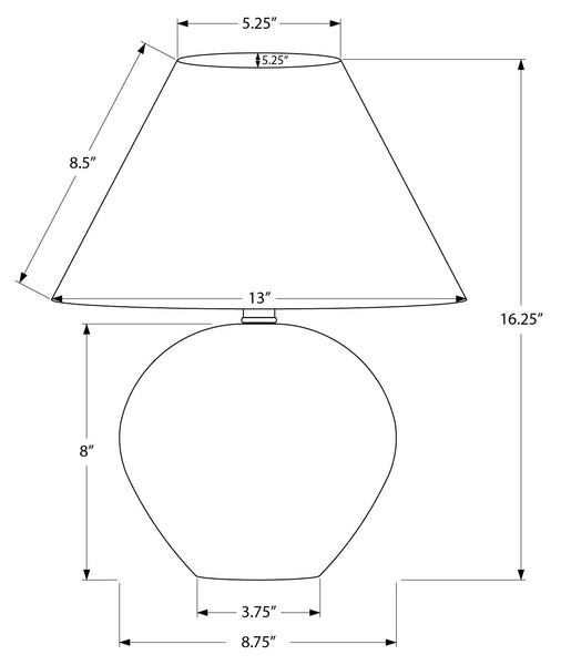 This stylish and fashionable globe shaped 16"h table lamp with a cream ceramic base and topped with a subtly contrasting, cream fabric empire shade is the perfect accent to brighten any room. Featuring an easy on/off switch on the transparent cord for a single bulb...