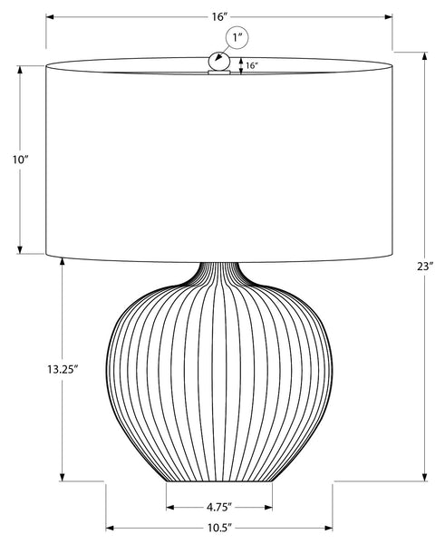 Add a touch of contemporary flair to any room with this stylish and trendy 23"h table lamp in an eye-catching textured finish, black ceramic base and a simple black fabric shade topped with a round black finial. The 3-way switch holds a single bulb with...