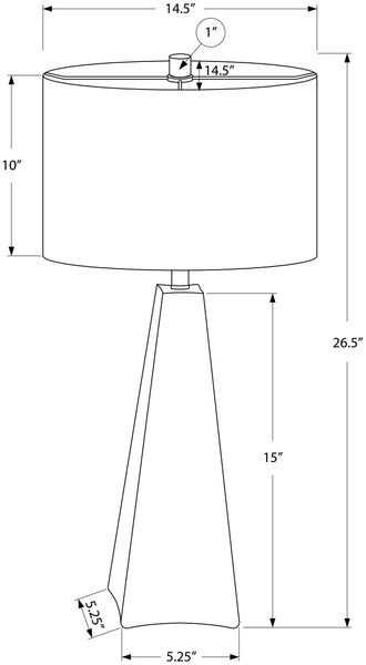 Make a bold and stylish statement in your living space with this trendsetting 27"h table lamp! Featuring a sleek black resin triangular body with a beige linen drum shade finished with a chic gold finial on top, this modern lighting option will be a standout...
