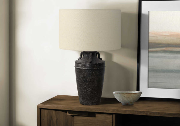 LIGHTING - 28"H TABLE LAMP BLACK CERAMIC / BEIGE SHADE