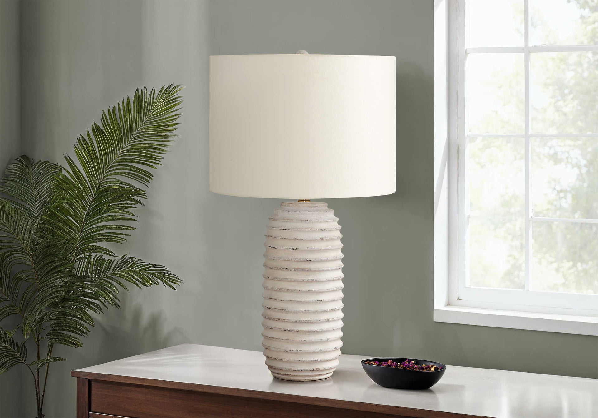 LIGHTING - 28"H TABLE LAMP CREAM RESIN / IVORY SHADE