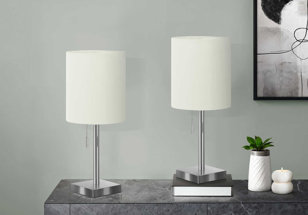 LIGHTING - 2PCS / 17"H TABLE LAMP NICKEL METAL/IVORY/USB