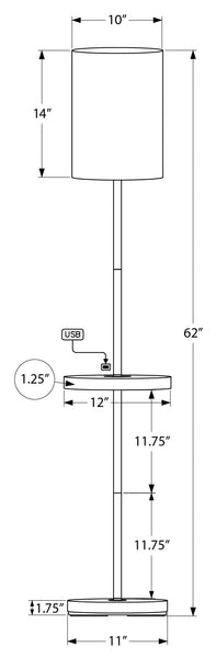 Floor Lamp with USB Port Black Illuminate your space with our chic and contemporary 62"H floor lamp with a convenient built-in shelf table. Crafted with sturdy black metal with a circular metal base with a white marble-look metal shelf table,...