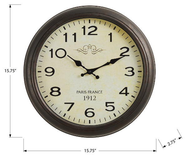 CLOCKS - 16"DIA / WALL CLOCK / ANTIQUE BROWN