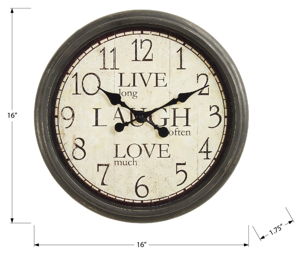 Bring an inviting touch to your home decor with this subtly charming 16" round wall clock in antique brown. This decorative accent piece features a classic roman numeric printed design under a glass surface, enclosed in a durable antique brown...