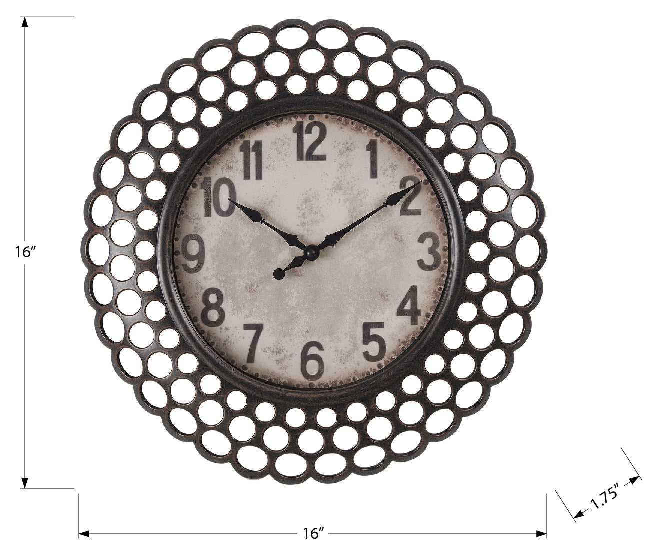 Stay ahead of the trend with this simple yet charming 16" round wall clock in antique brown. This clock effortlessly combines functionality with style, making it the perfect addition to your home decor. The easy to read printed numerical and...