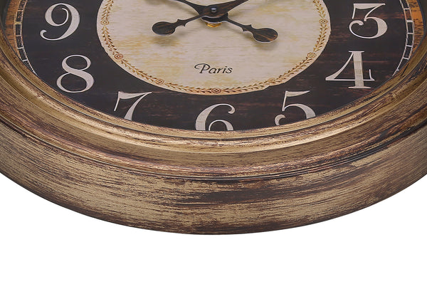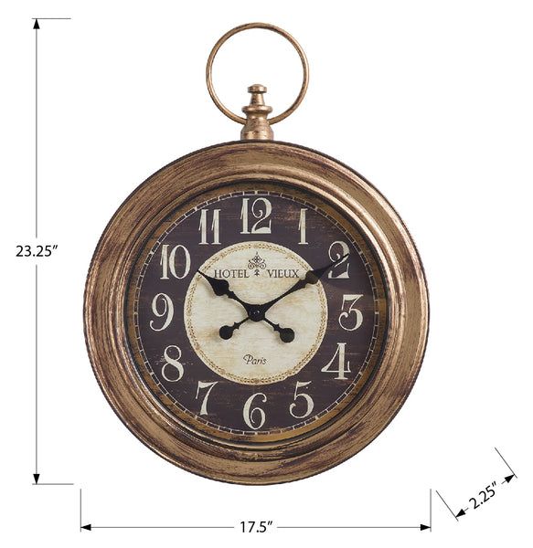 Add something special to that empty wall space with this elegant, vintage inspired ,18" round wall clock in a pocket-watch design with a rubbed antique brown finish. Crafted with a durable plastic frame and a protective glass surface brings a high-quality decorative piece to place...