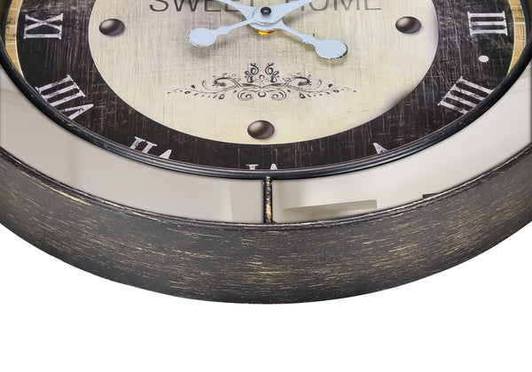 Stay ahead of the trend with this stylish 18" round wall clock with a vintage twist! This stunning retro style clock features a gorgeous mirror frame encased in an outer plastic frame with a rich brown hue, making it the perfect statement piece in your...