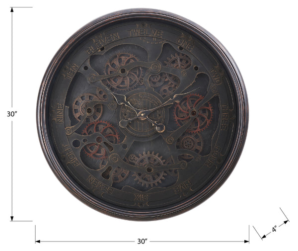 CLOCKS - 30"DIA / GEAR MECHANISM WALL CLOCK / BLACK