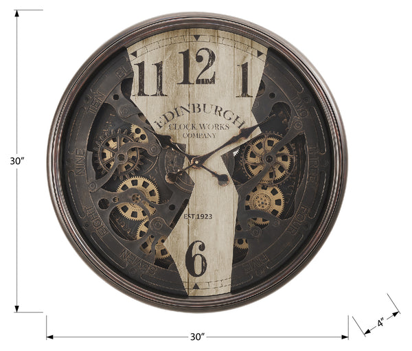 CLOCKS - 30"DIA / GEAR MECHANISM WALL CLOCK / BROWN