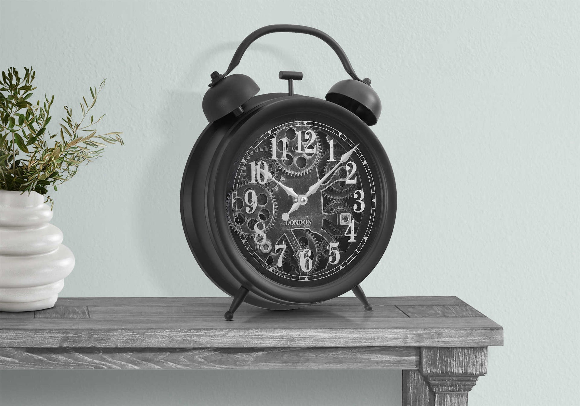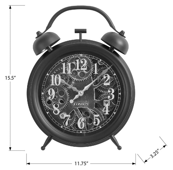 Introduce some vintage charm to your decor with this 12" round table clock with a moving gear mechanism design in a sleek dark brown finish. This analog clock features a high-quality quartz movement for accurate timekeeping, making it a stylish...