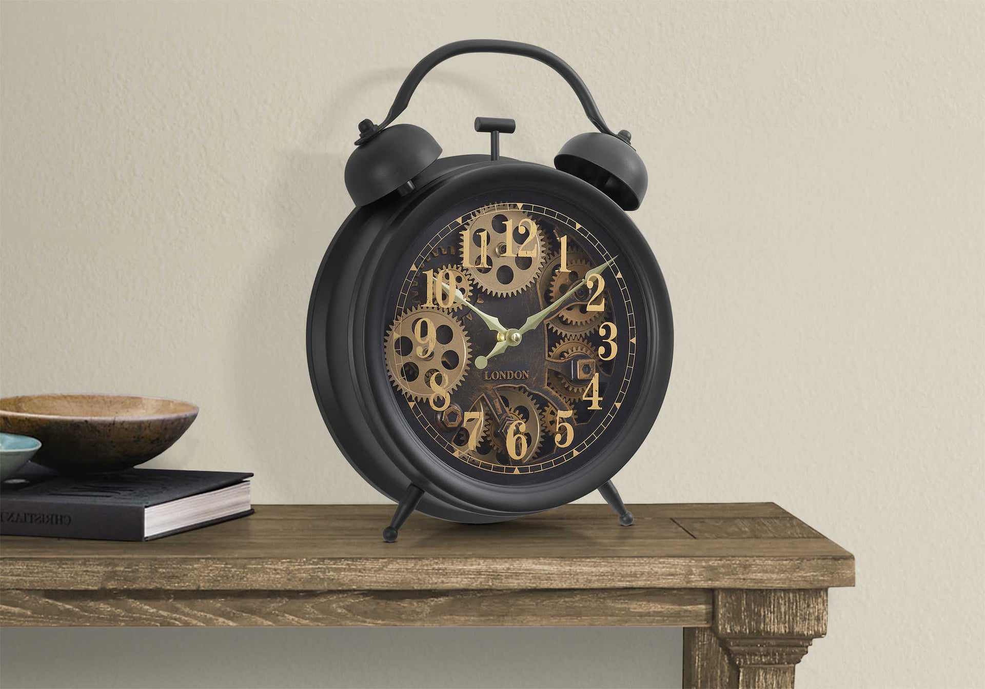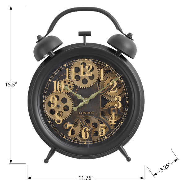 Introduce some vintage charm to your decor with 12" this round table clock with a moving gear mechanism design in a sleek black finish. This analog clock features a high-quality quartz movement for accurate timekeeping, making it a stylish and...