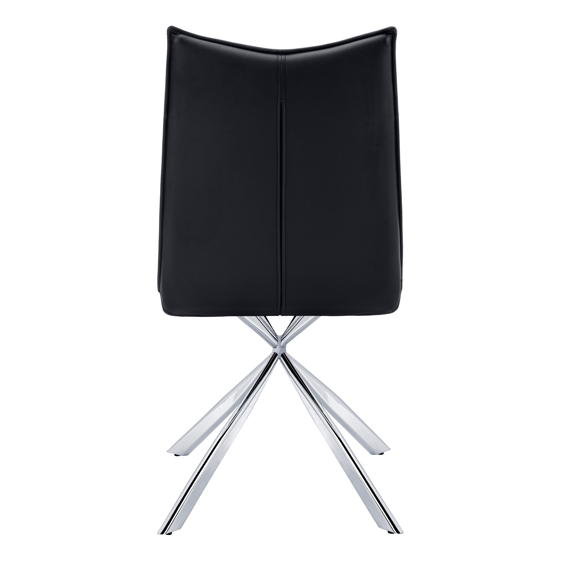Out-of-this-world style meets down-to-earth comfort with these upholstered dining chairs in a black leather-look fabric. Intersecting metal legs in a chrome finish flare to form a distinctive starburst design that will add a spark to your dining room or eat-in kitchen. Vertical channel tufting and...