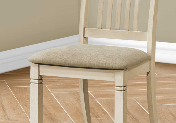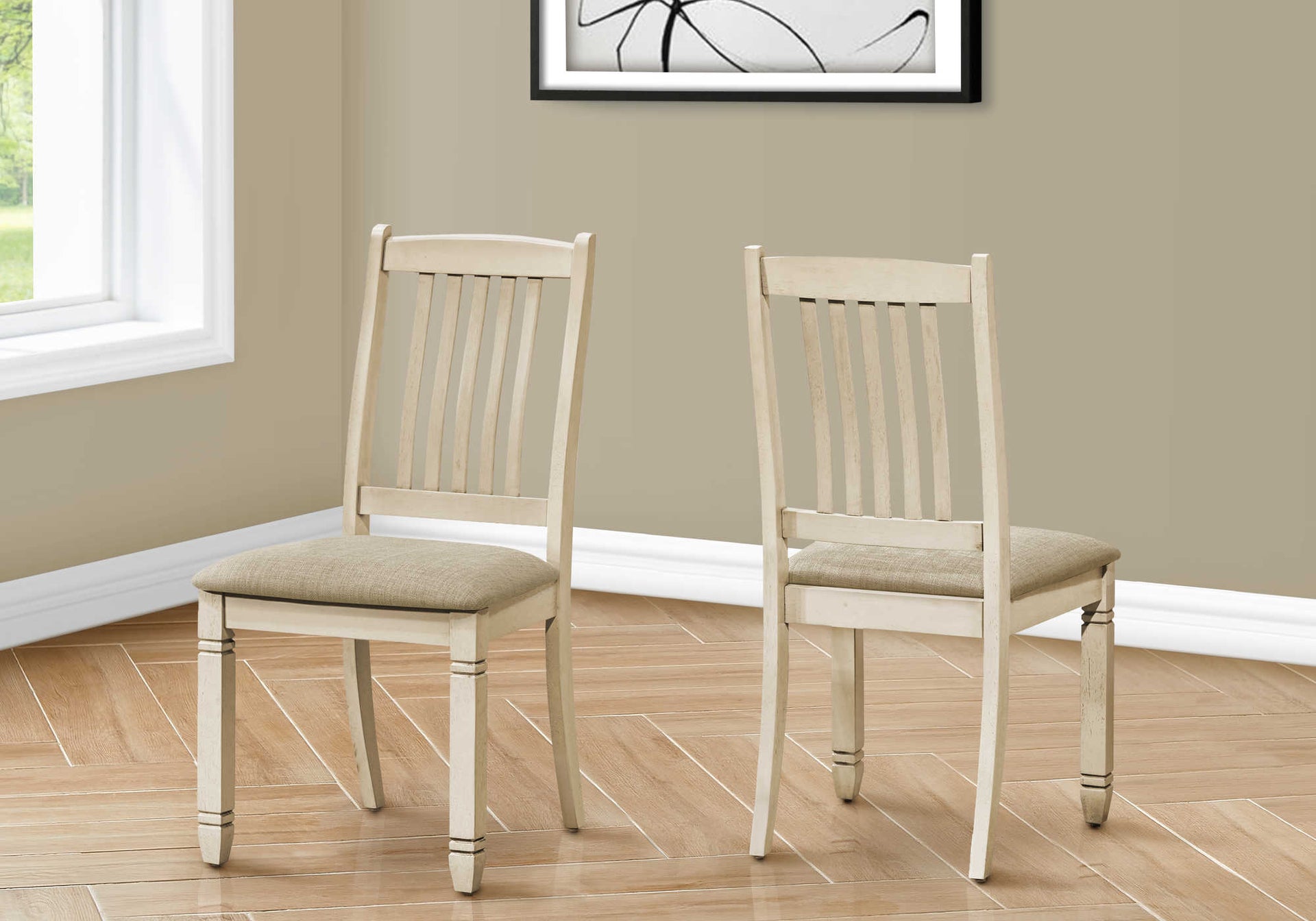 Upgrade your dining space with this trendy set of 2 dining chairs upholstered in beige linen-look fabric! With an elegant antique white finish and standing at a comfortable 38" height, these side chairs are perfect for everyday, casual family dining. The solid wood legs provide...