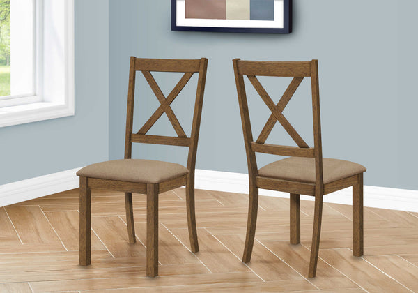 DINING CHAIR - 2PCS / 40"H BROWN WALNUT / BEIGE FABRIC