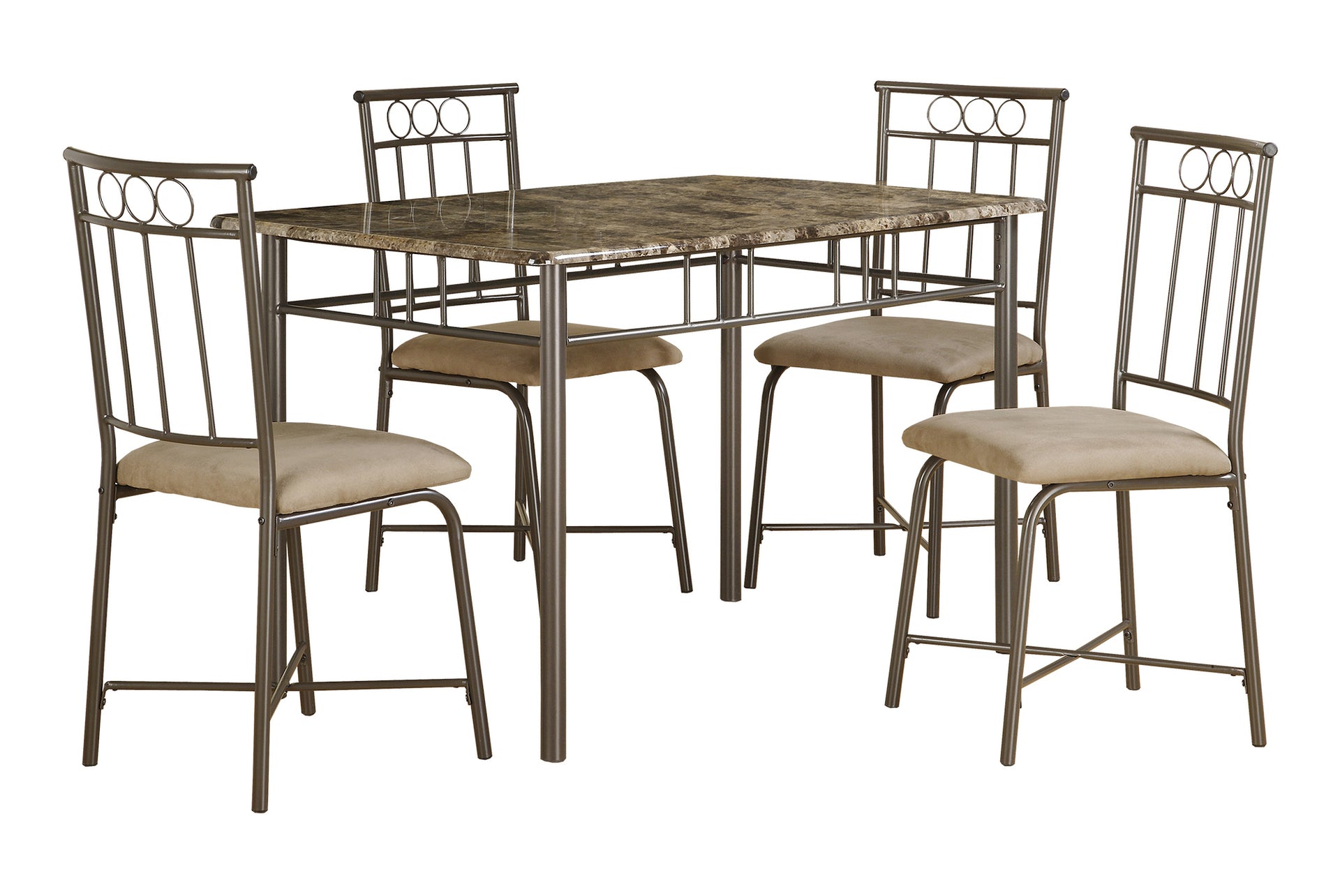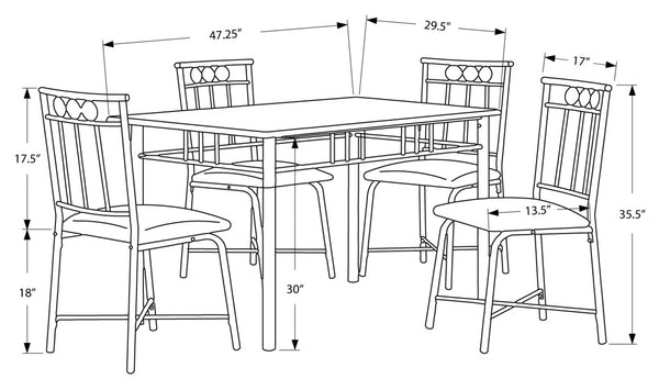 Welcome a casual family dining experience with this modern 5 piece set dining table set! It features a 40" rectangular dining table with a stunning white marble look laminate top and a sturdy black metal base for a chic contemporary...