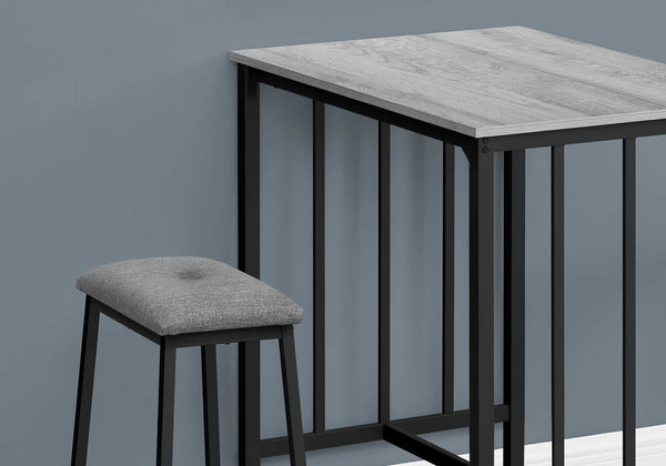 Elevate your dining experience with this trendy 3-piece counter height dining set! Made for casual family dining, this contemporary and fashionable style bistro set has a two-tone finish with a wood-look grey laminate 36" rectangular table top and black metal legs. The grey fabric cushioned...