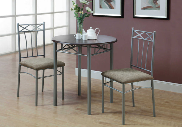 DINING SET - 3PCS SET / ESPRESSO / SILVER METAL