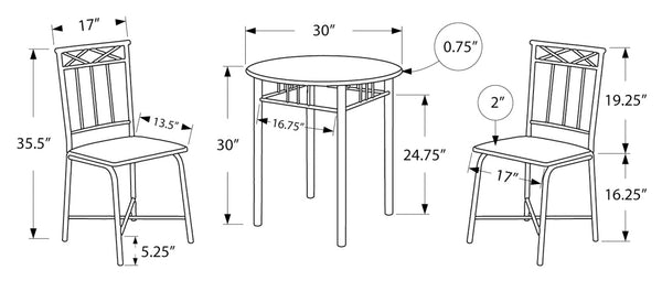 This chic three piece bistro set offers a classic look that will blend in with any dining decor. The round table features a grey marble-look laminate top and sturdy black metal legs. The two armless metal side chairs are accented with a x design along...