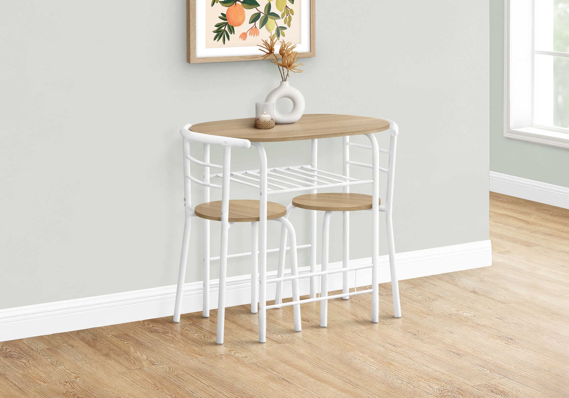 DINING SET - 3PCS SET / NATURAL TOP / WHITE METAL