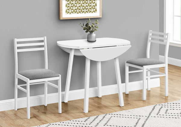Elevate your dining experience with this trendy 3-piece counter height dining set! Made for casual family dining, this contemporary and fashionable style bistro set has a white laminate 36" rectangular table top and white metal legs. The grey fabric cushioned...