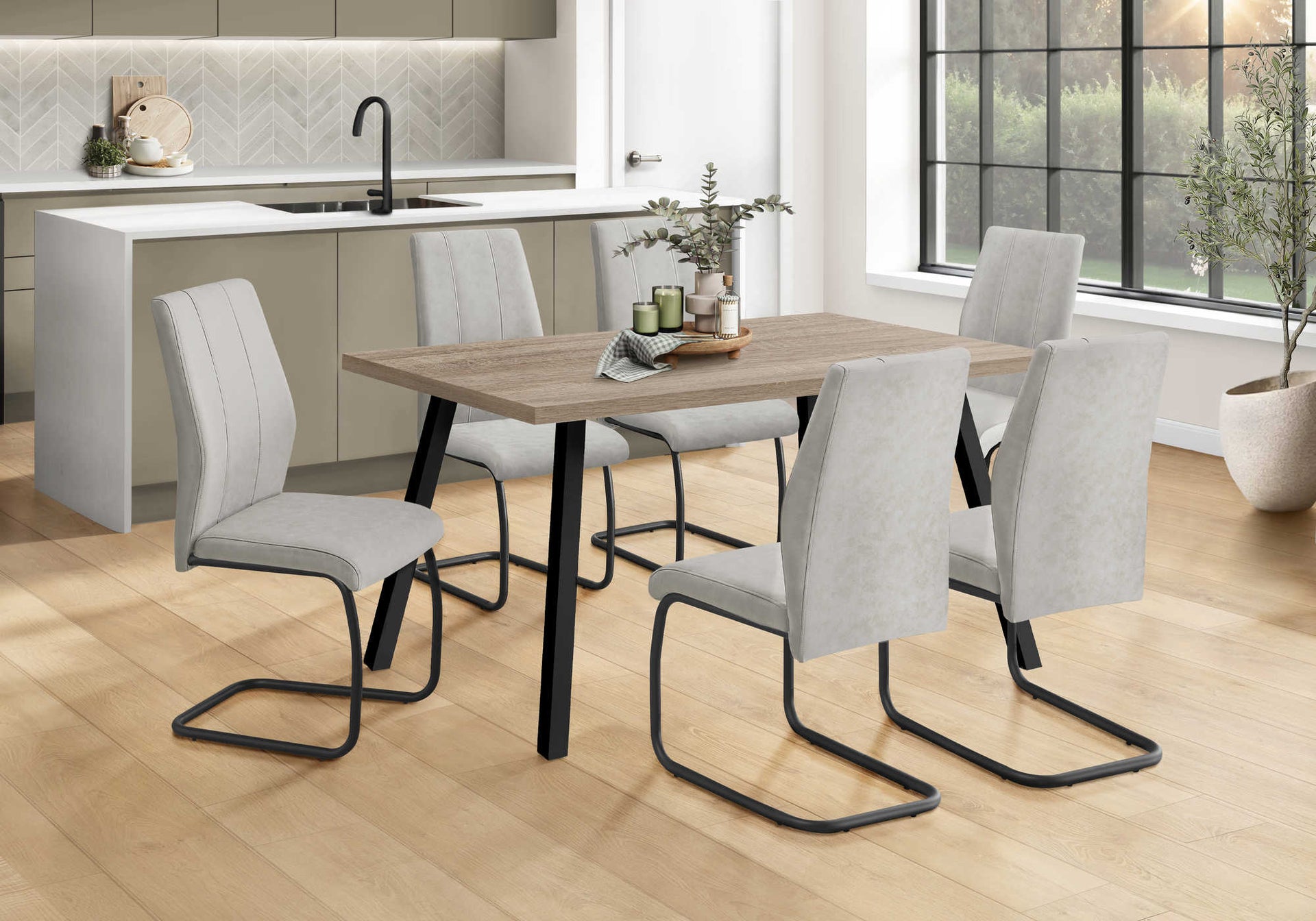 There is no doubt to say this fantastic dining room table set will suit any decor style in a contemporary living setting. Including a simple rectangular table top with black metal tube legs and a decorative metal apron, the matching...