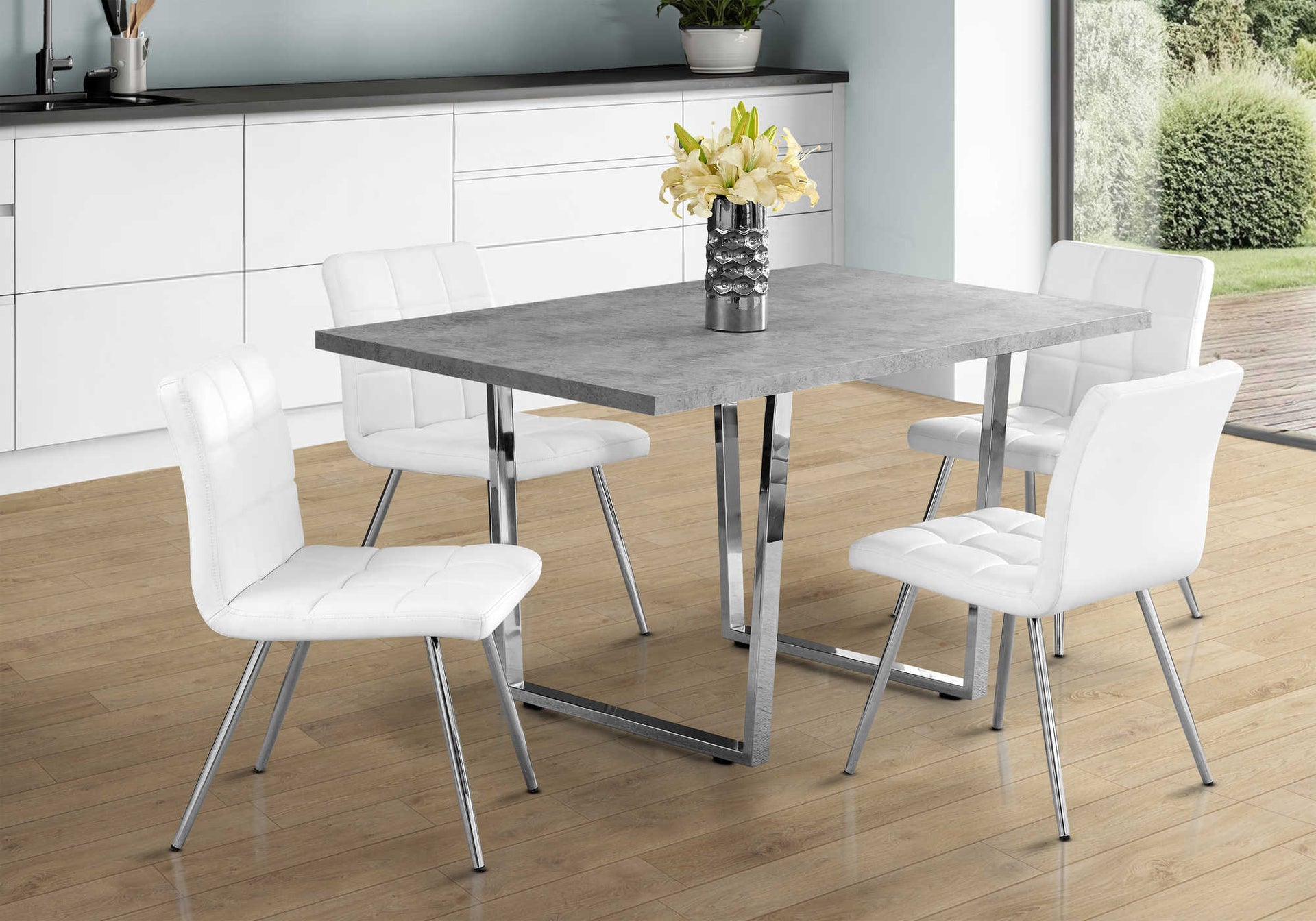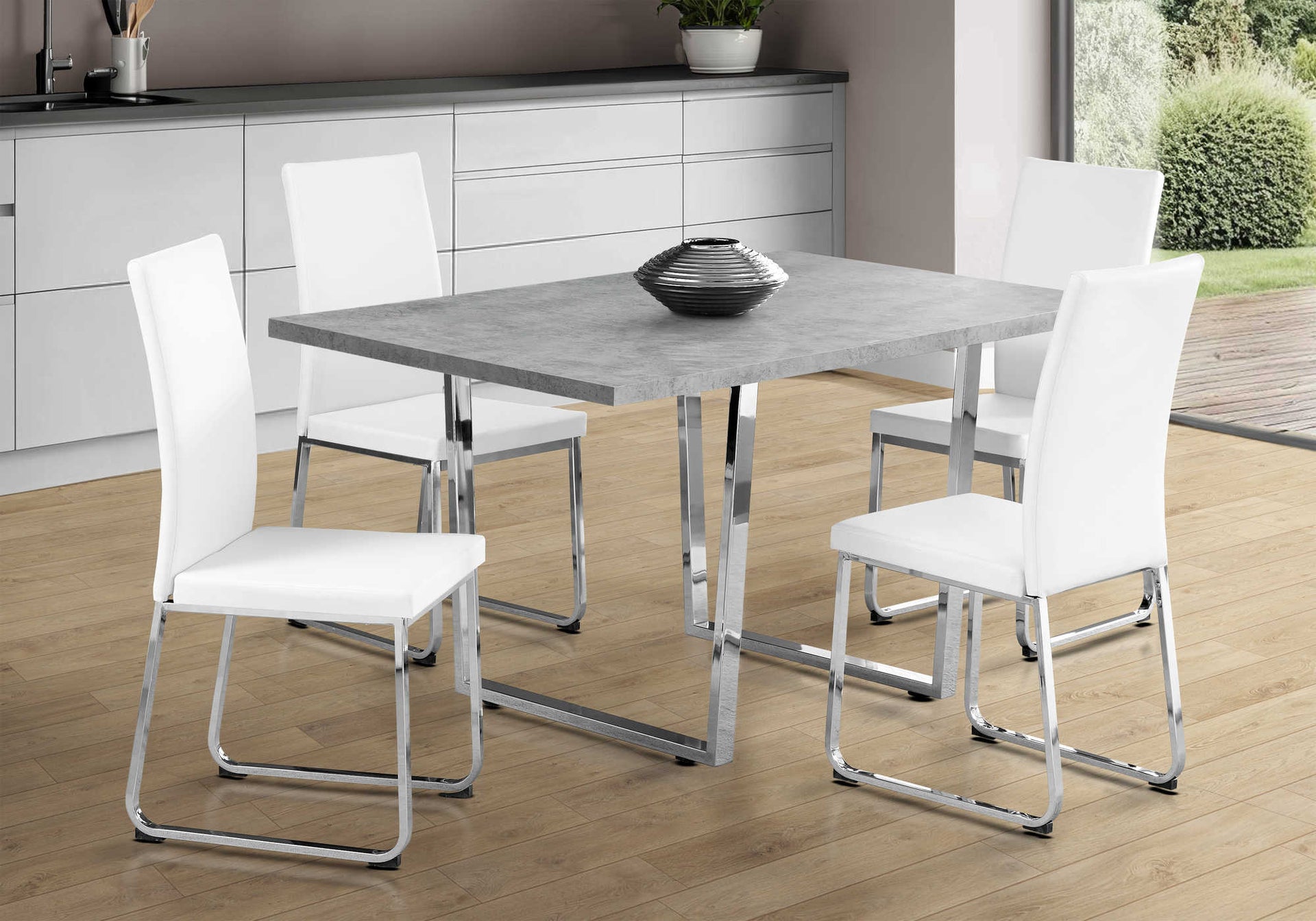 Welcome to contemporary at its finest! In a trendy grey cement finish, this is the most versatile kitchen table for casual or formal dining for up to 4 people. Thanks to U-shaped chrome metal legs, the thick rectangular table is extra sturdy and can fit...