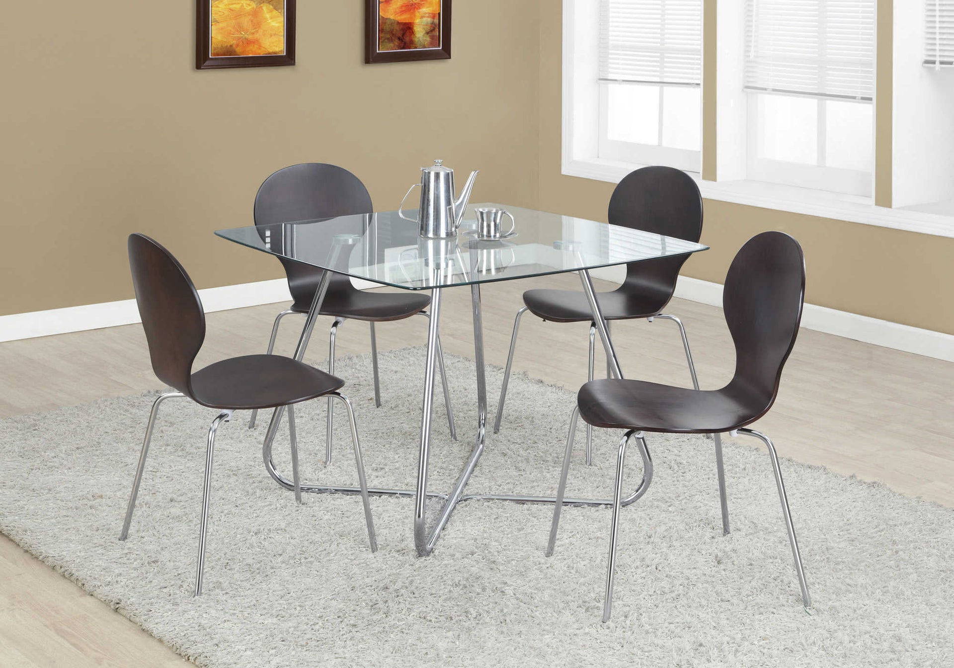 This contemporary style five piece dining set includes a sleek espresso marble-look rectangular table top with bronze metal tube legs, and a decorative metal apron that will bring a touch of style to your home. The 4 complimentary armless chairs,...