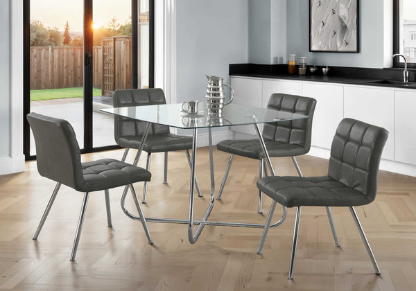 Transform the look of your dining space with this contemporary 5-piece grey and black dining set. This dining set includes a 40" long rectangular table, three chairs, and a bench that accommodates up to 4 people making it perfect for...