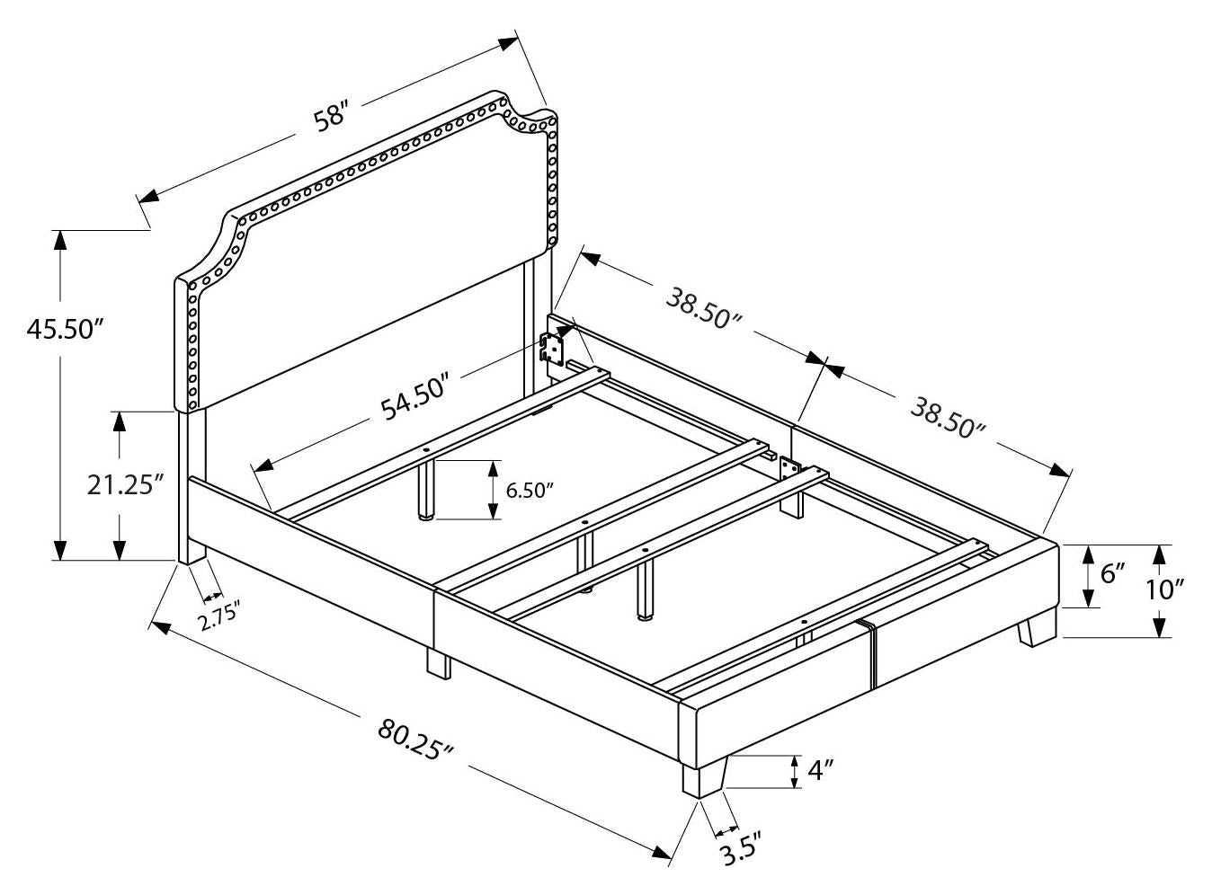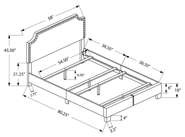 Add style, elegance and a comfortable element to your bedroom with this contemporary designed full / double size bed frame. Featuring a chic grey linen-look fabric with stylish chrome metal nailhead trim and arched cutout silhouette this bed will surely be the focal point of...