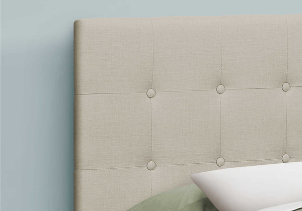 Bring a luxurious feel to your bedroom with the updated classic styling of queen-size upholstered bedframe with a wingback headboard. Covered in an elegant beige linen-look fabric over foam cushioning on all sides, this bed is embellished with button tufting...