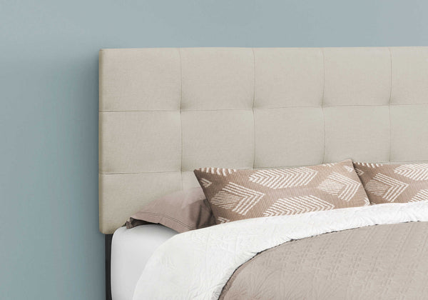 BED - QUEEN SIZE / BEIGE LINEN WITH 2 STORAGE DRAWERS
