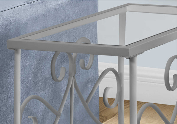 Trust the transitional style of this practical side table to meet your decor needs. Featuring a clear tempered glass table top and sturdy stardust brown metal frame, this versatile piece can be used as an accent table in the living...