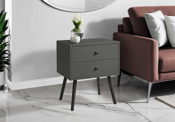 ACCENT TABLE - 24"H / GREY END TABLE WITH 2 DRAWERS