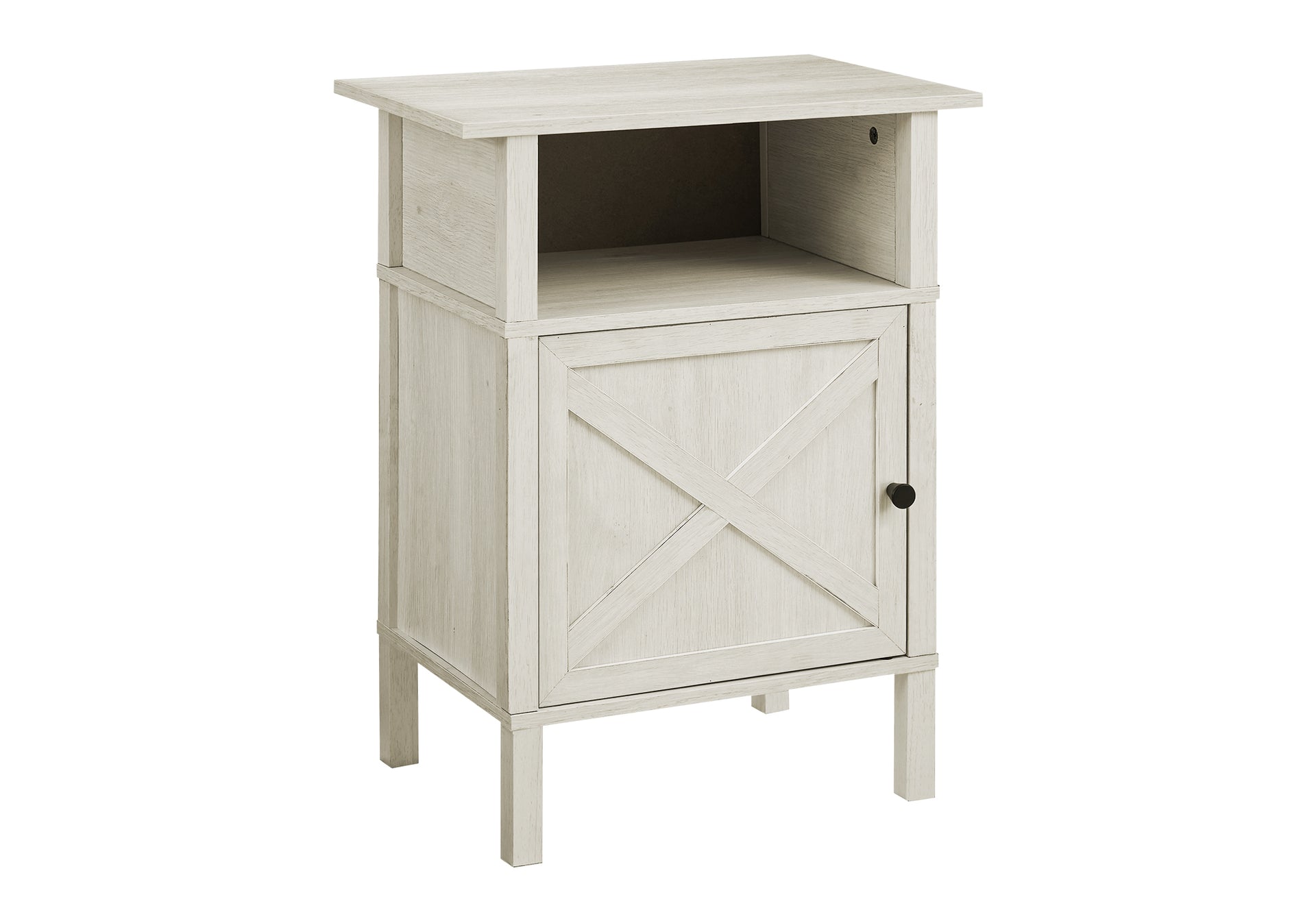 Upgrade your living room or bedroom with this versatile side accent table. Standing at 24" tall, this stylish side table features a warm washed oak laminate finish on all sides, complimented with a classic black metal knob on the cabinet door. The durably designed construction...