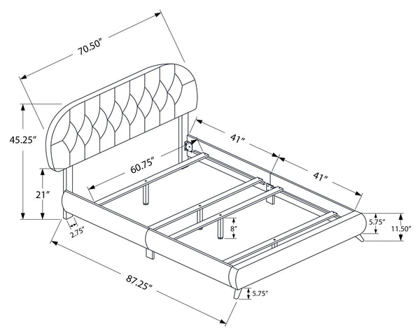 This is where your dreams begin with the classic retro styling of this rounded diamond tufted headboard, and clean lined frame for a subtle modern touch. The padded and upholstered queen sized low platform bed frame in a timeless dark brown leather-look fabric, is supported...