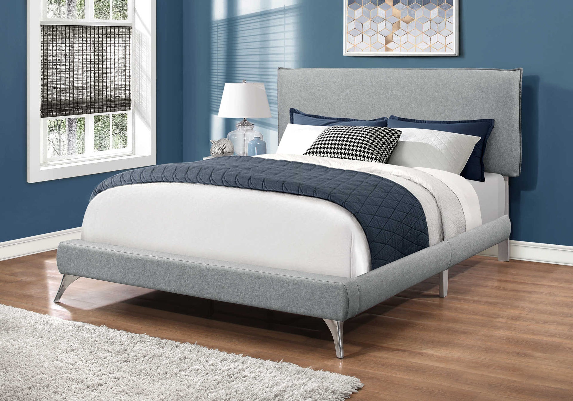 BED - QUEEN SIZE / GREY LINEN WITH CHROME LEGS