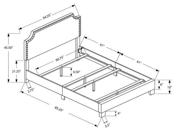 Add style, elegance and a comfortable element to your bedroom with this contemporary designed queen size bed frame. Featuring a chic grey linen-look fabric with stylish chrome metal nailhead trim and arched cutout silhouette this bed will surely be the focal point of any bedroom....