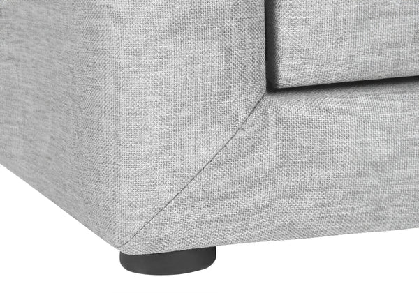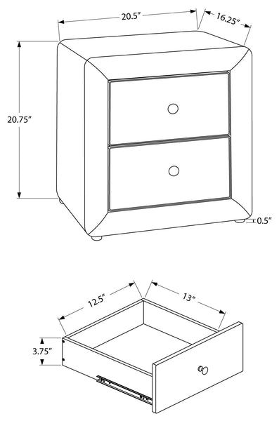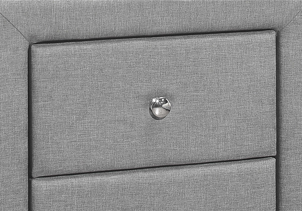 This upholstered nightstand demonstrates how minimalism can be both chic and sophisticated. The timeless and contemporary design emphasizes clean, rectangular lines and smooth surfaces. This bedroom accent features a foam-padded plywood frame, upholstered in grey linen-look fabric. The chrome-finished metal drawer knobs provide a contrast...